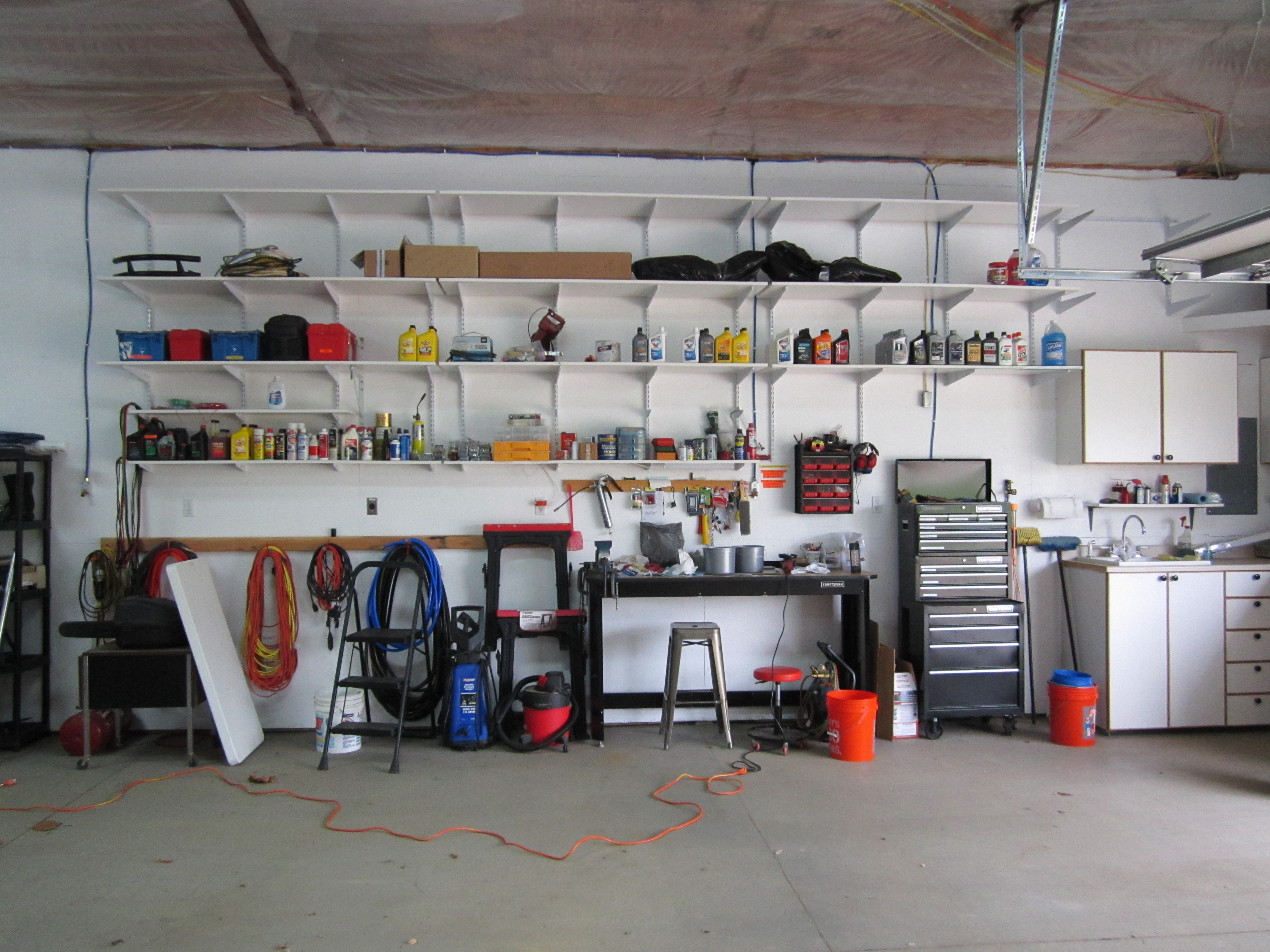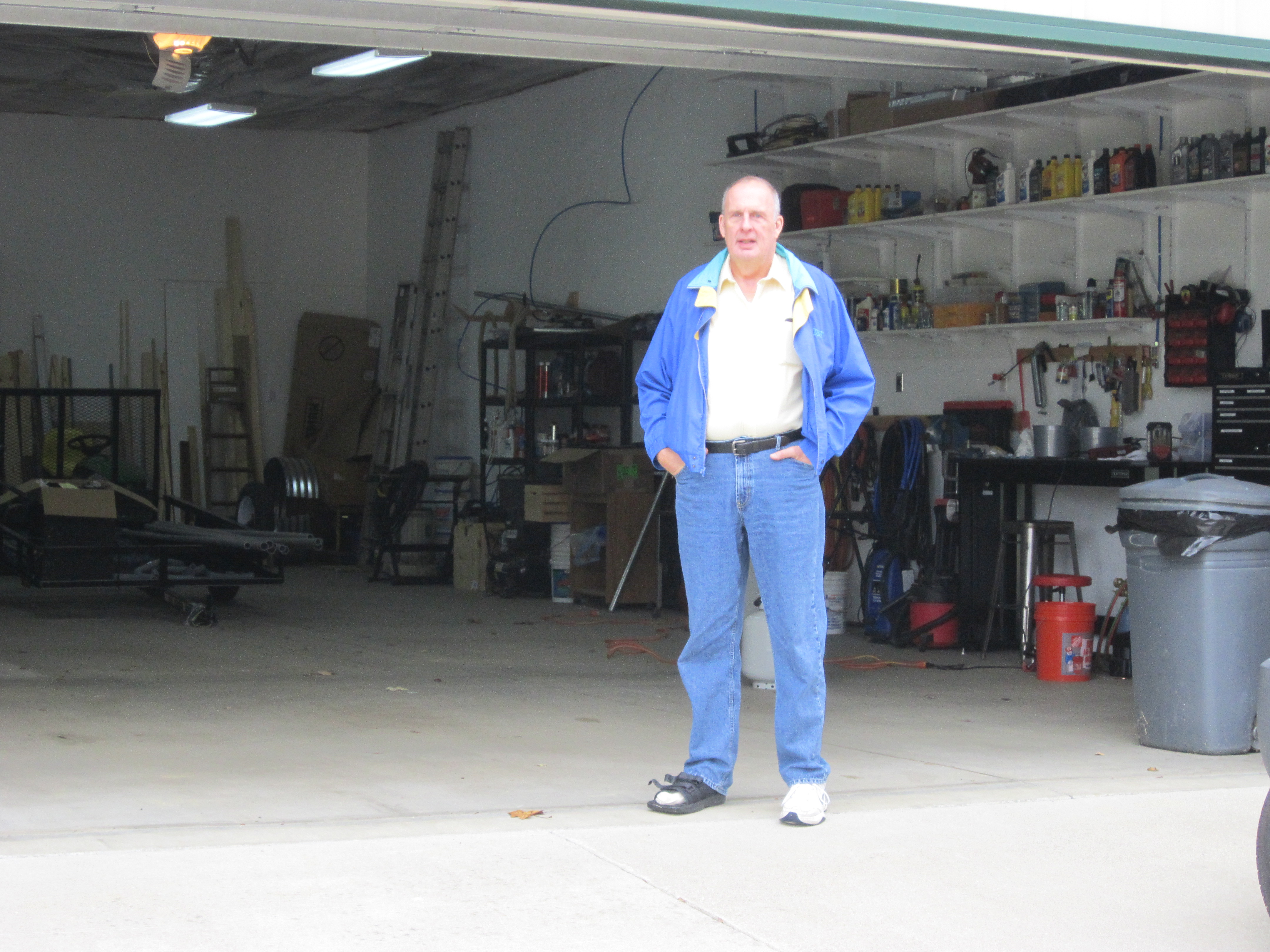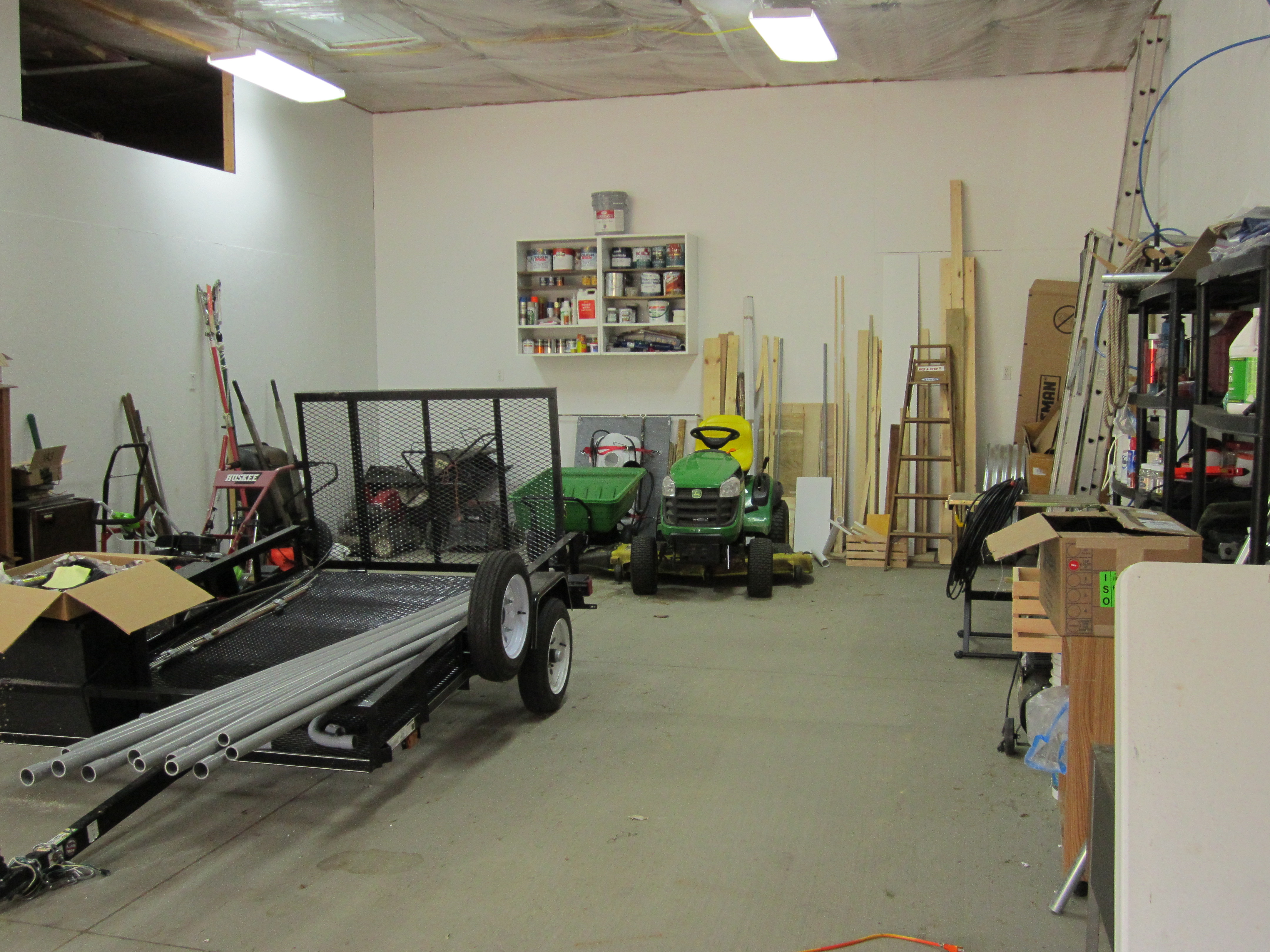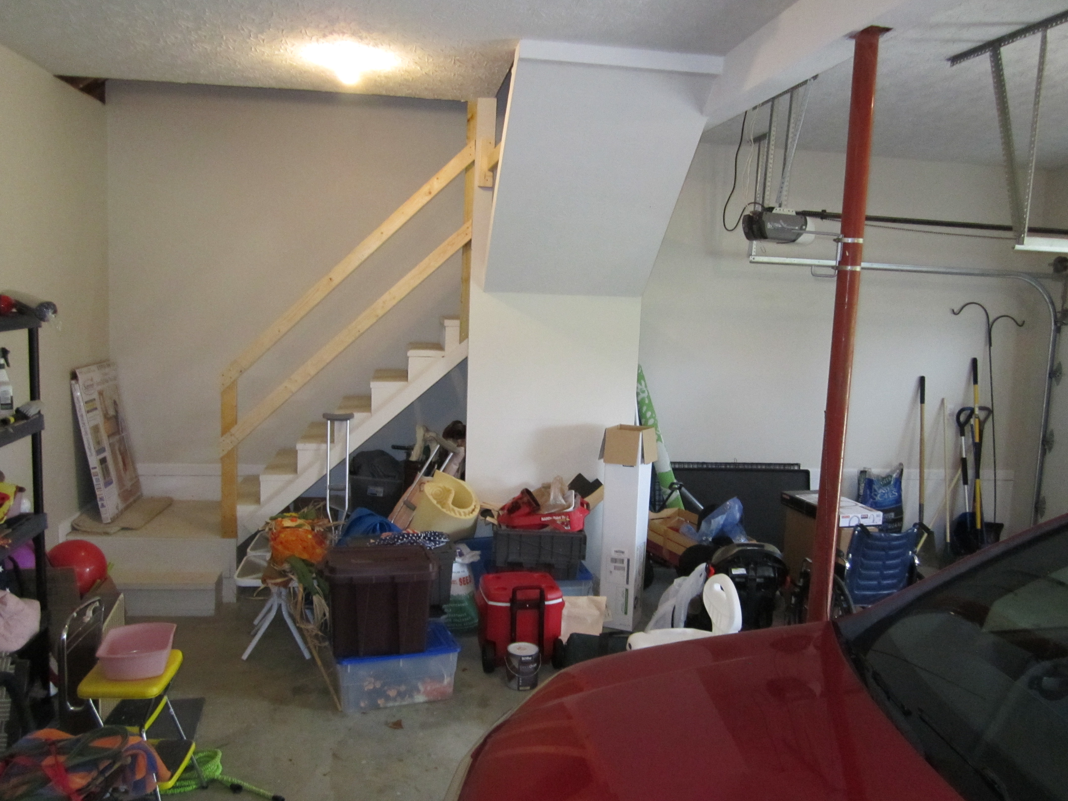 This is the inside of the garage looking out from Kathy's office area. The stairs on the far side go up to storage area over the garage. |