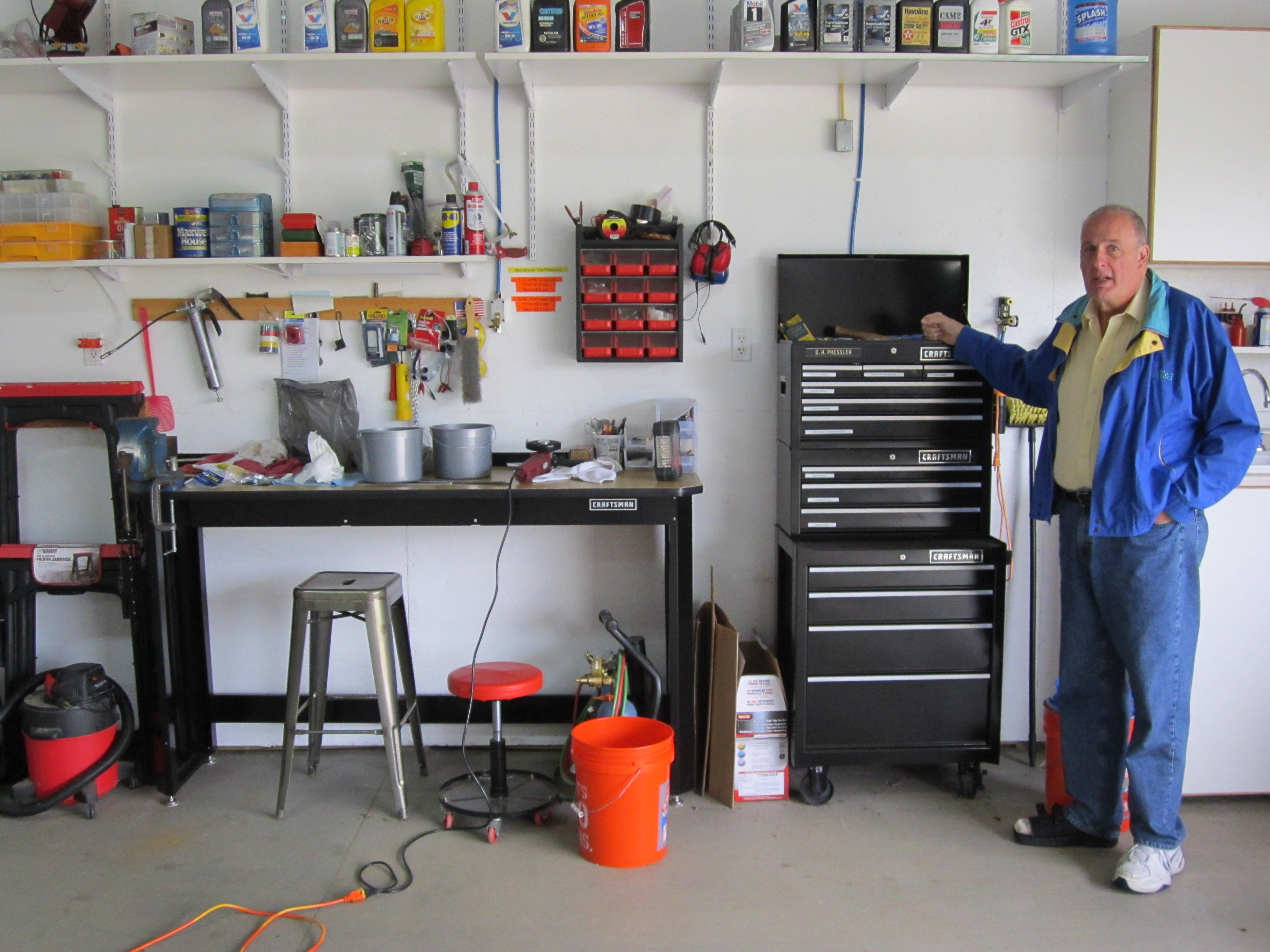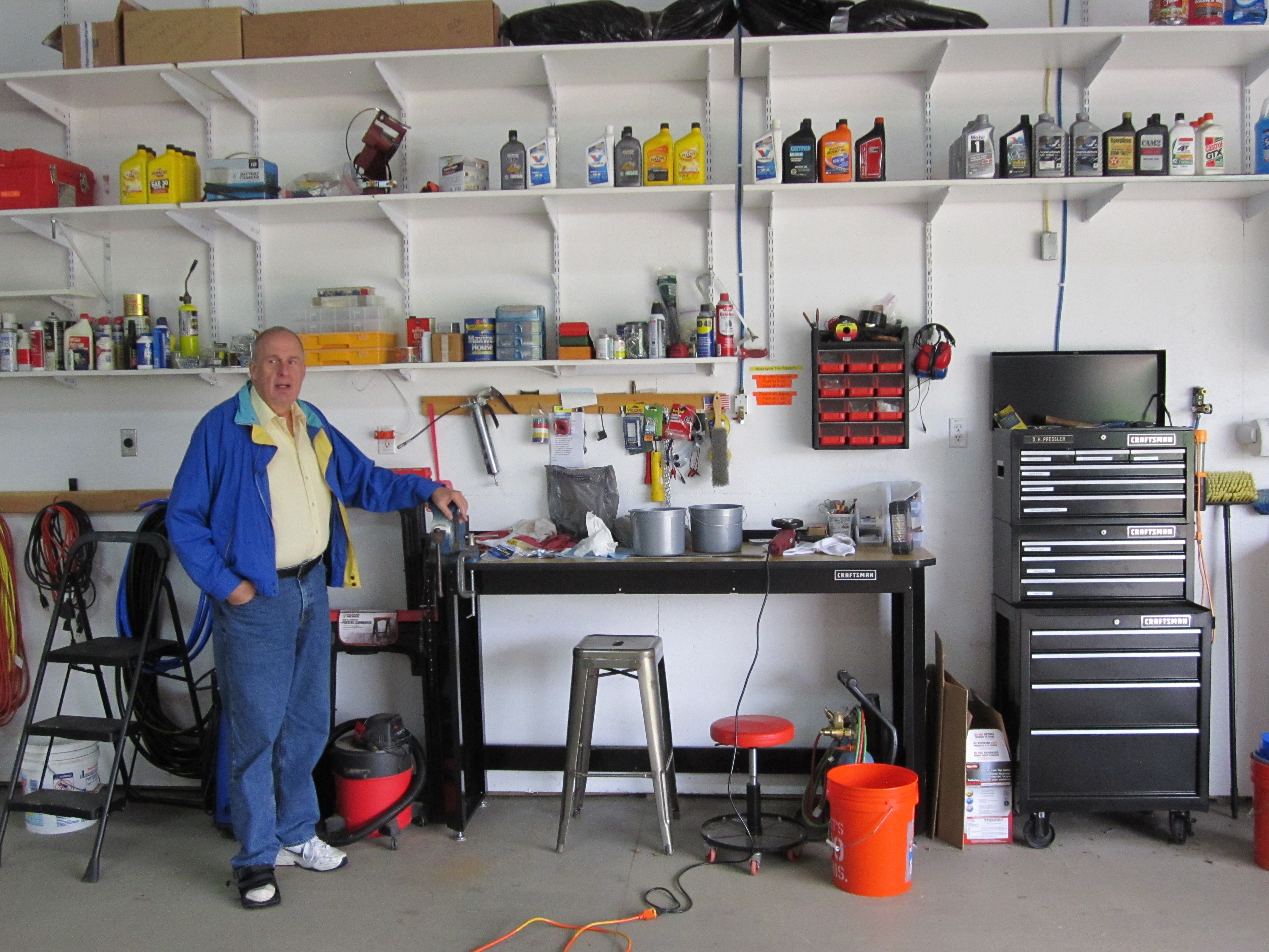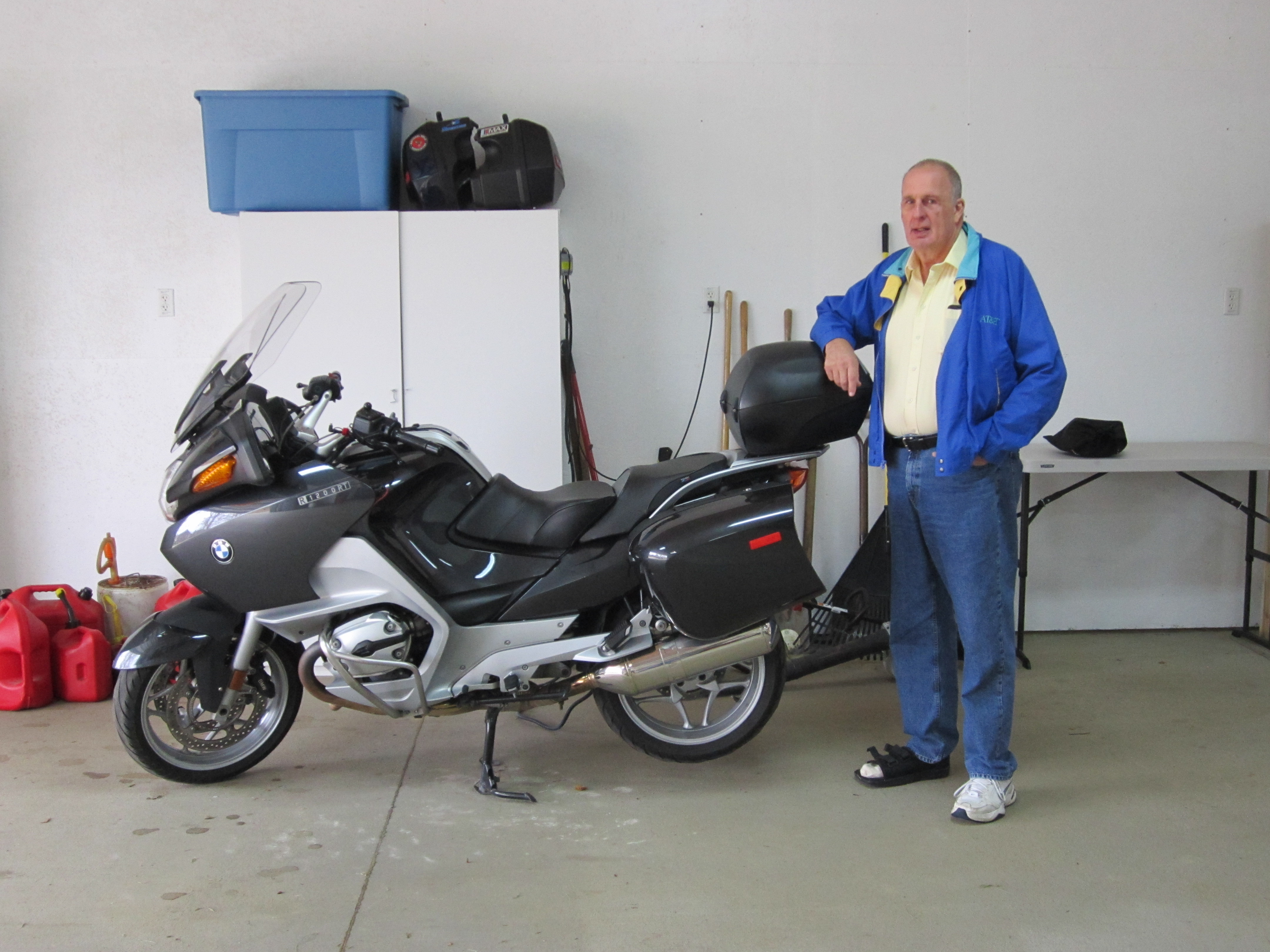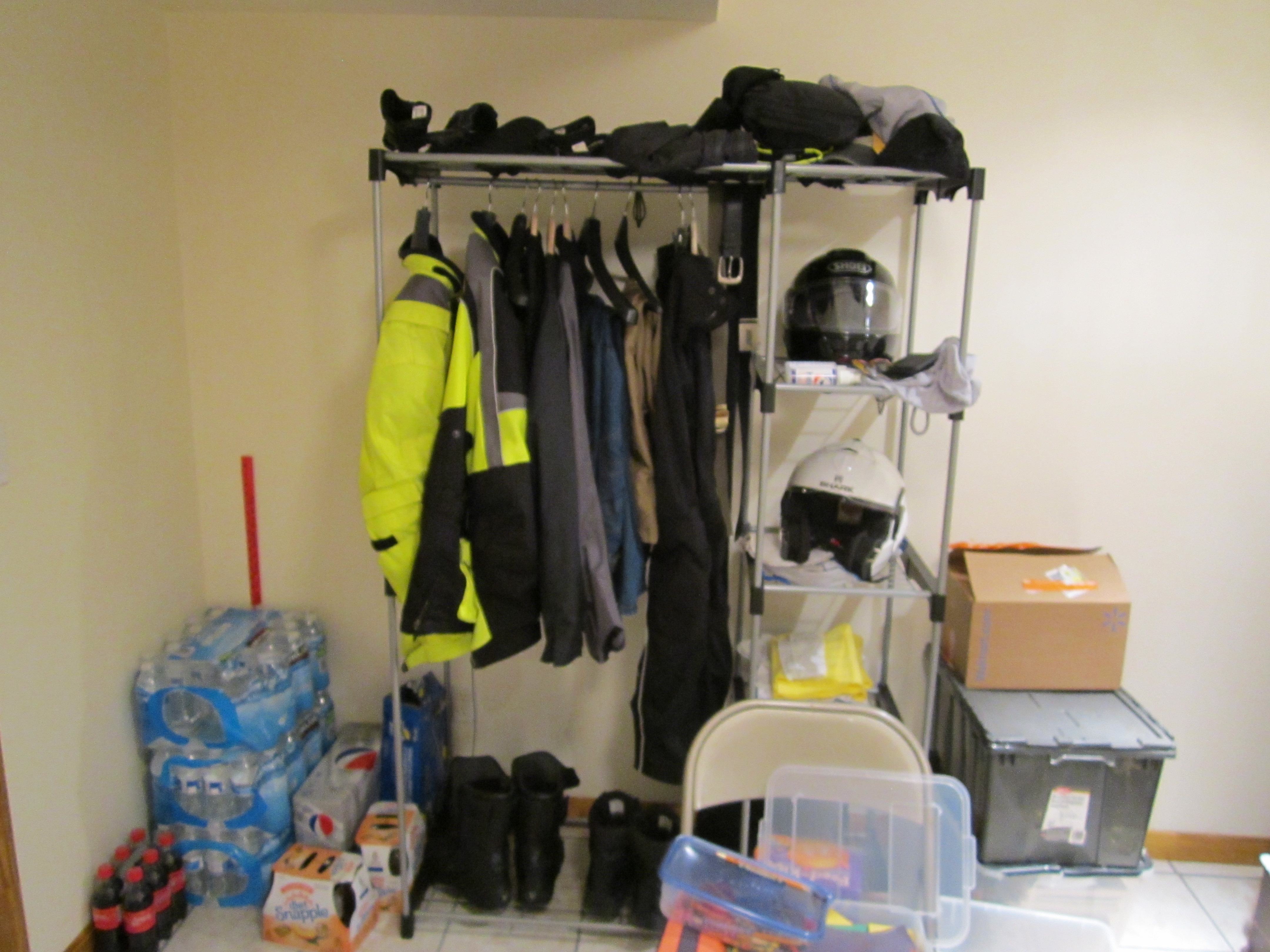 My motorcycle stuff in Kathy's sewing room. It was getting damp out in the workshop. |