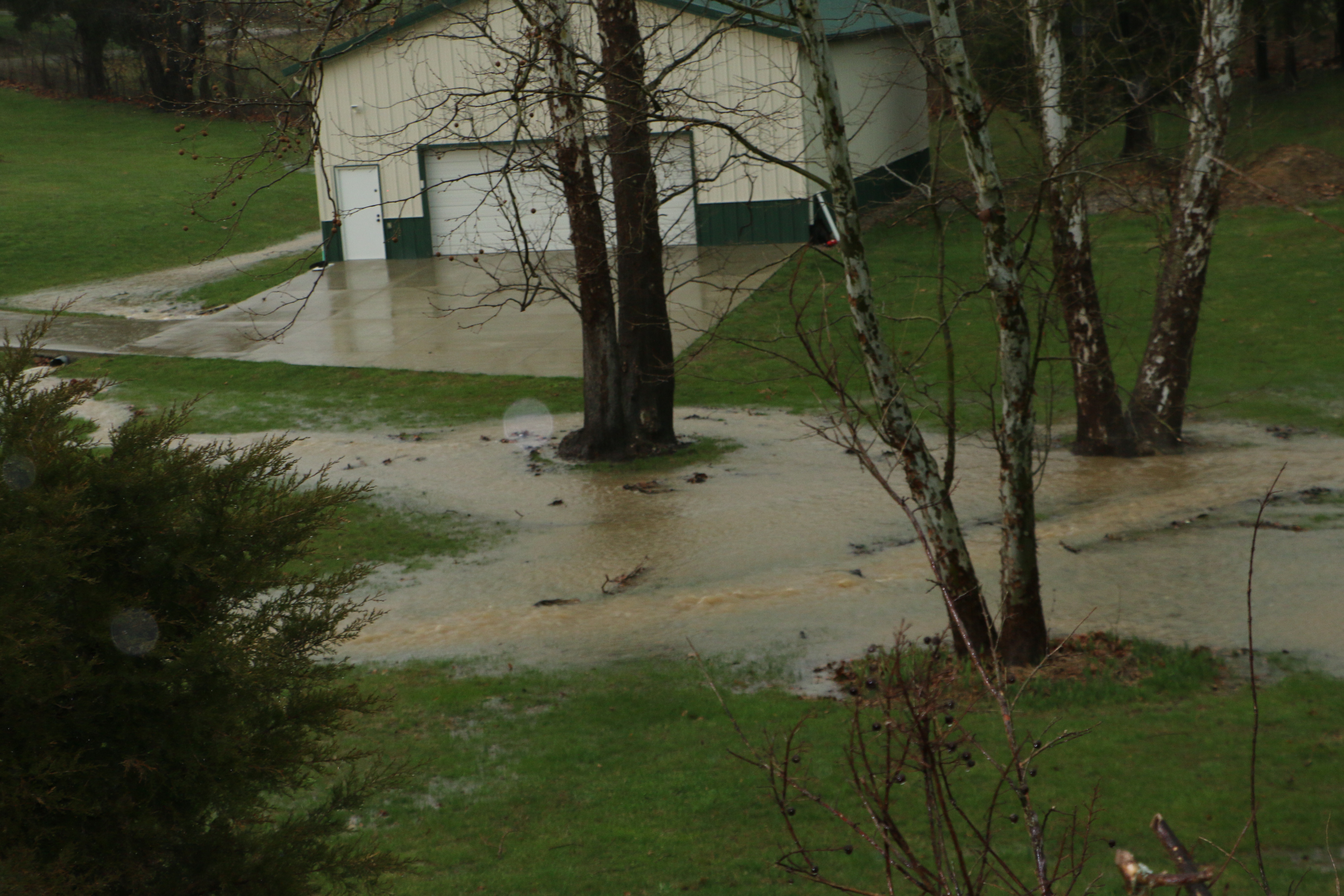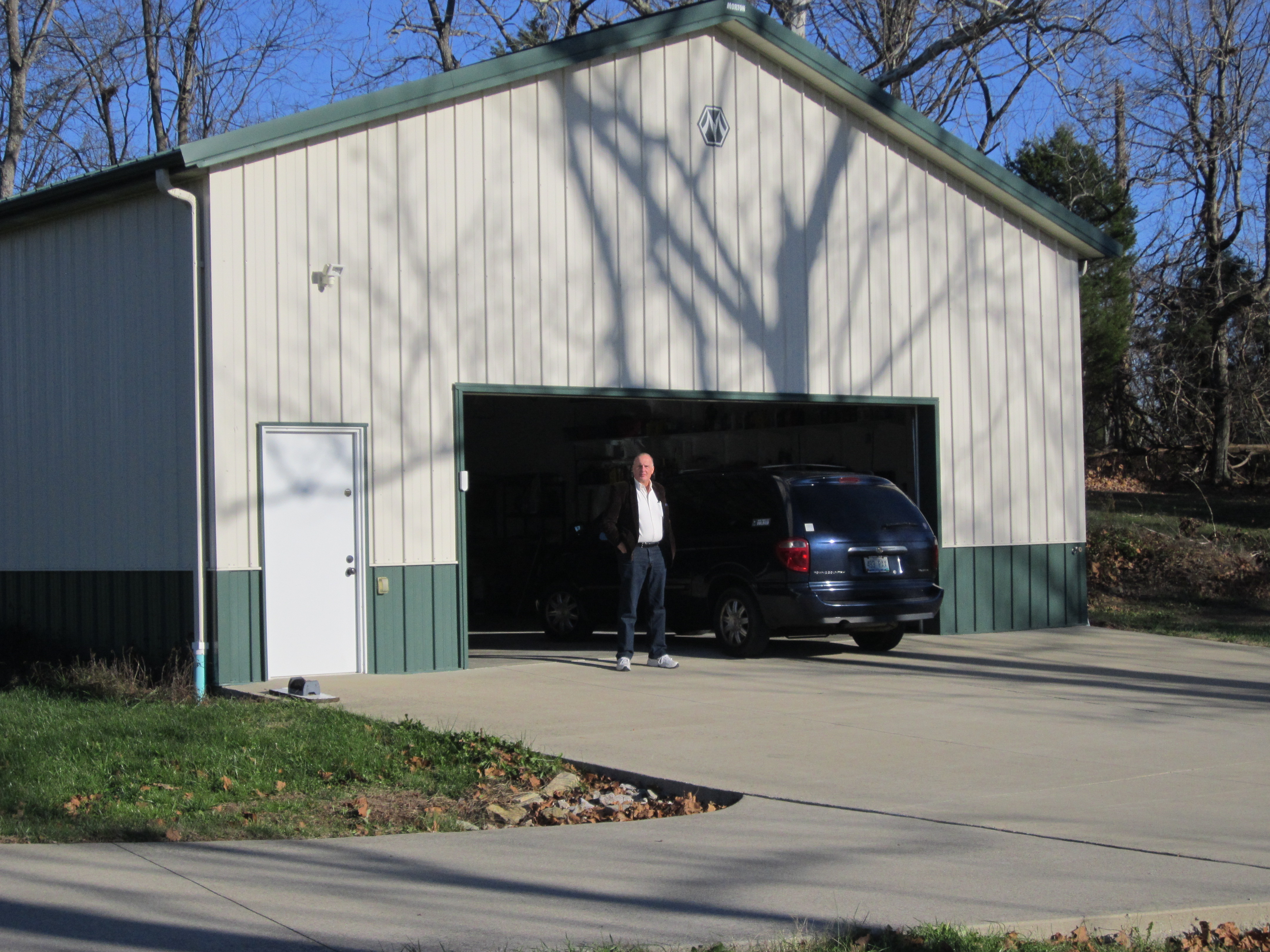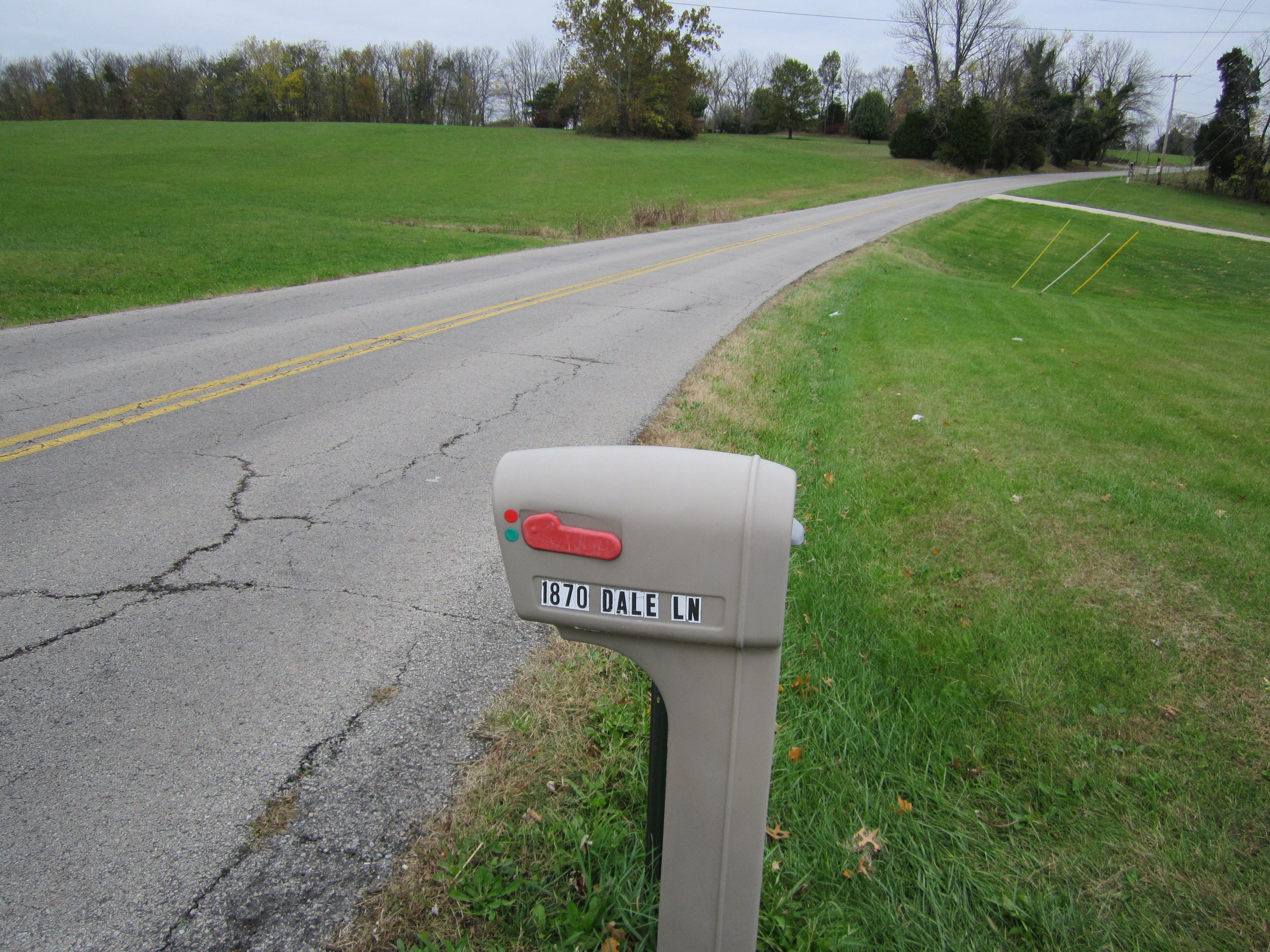 This is the mail box in front of the house and a look at the road in front of the house. If you look hard you can see the my second driveway into my workshop. |