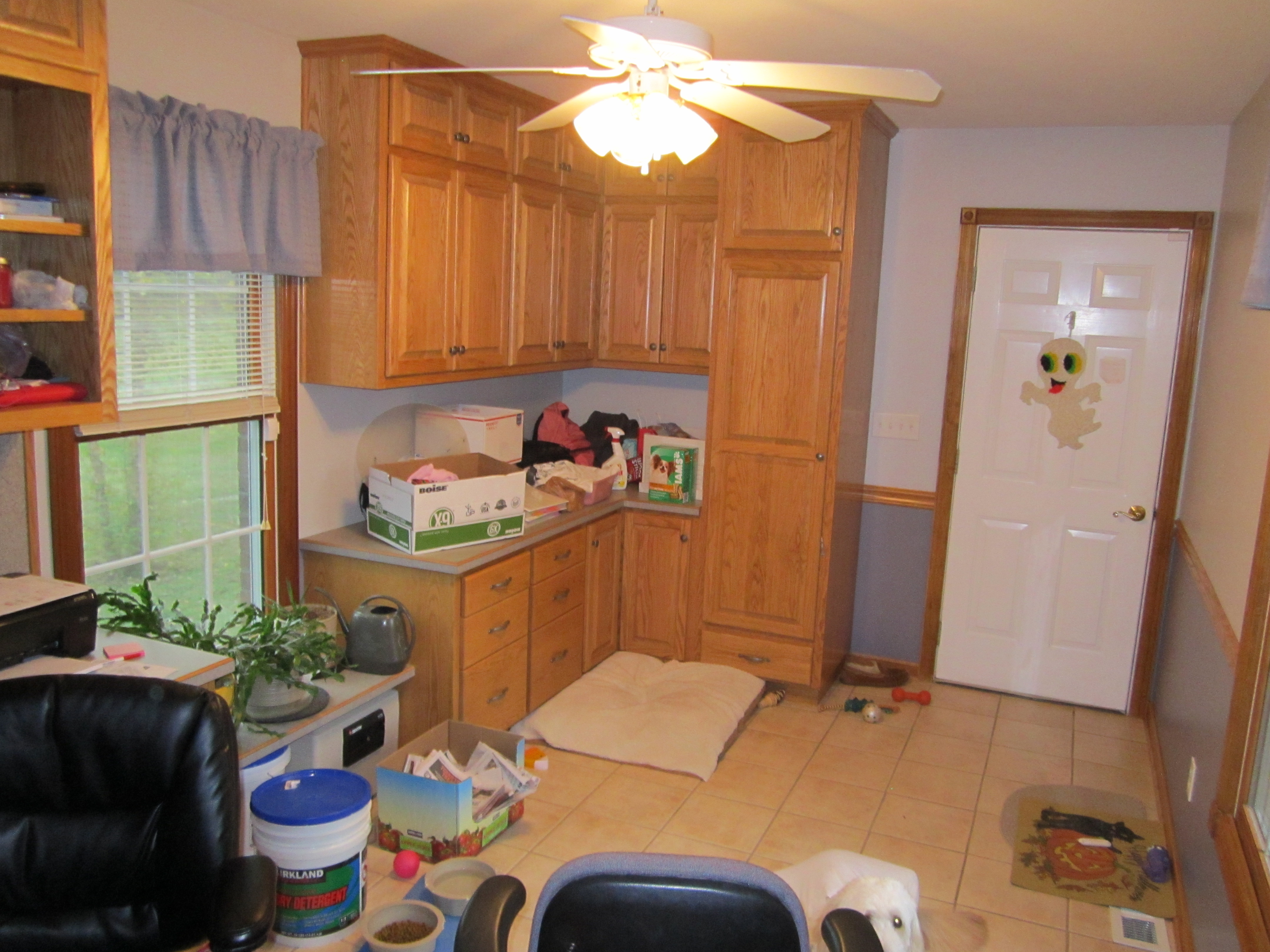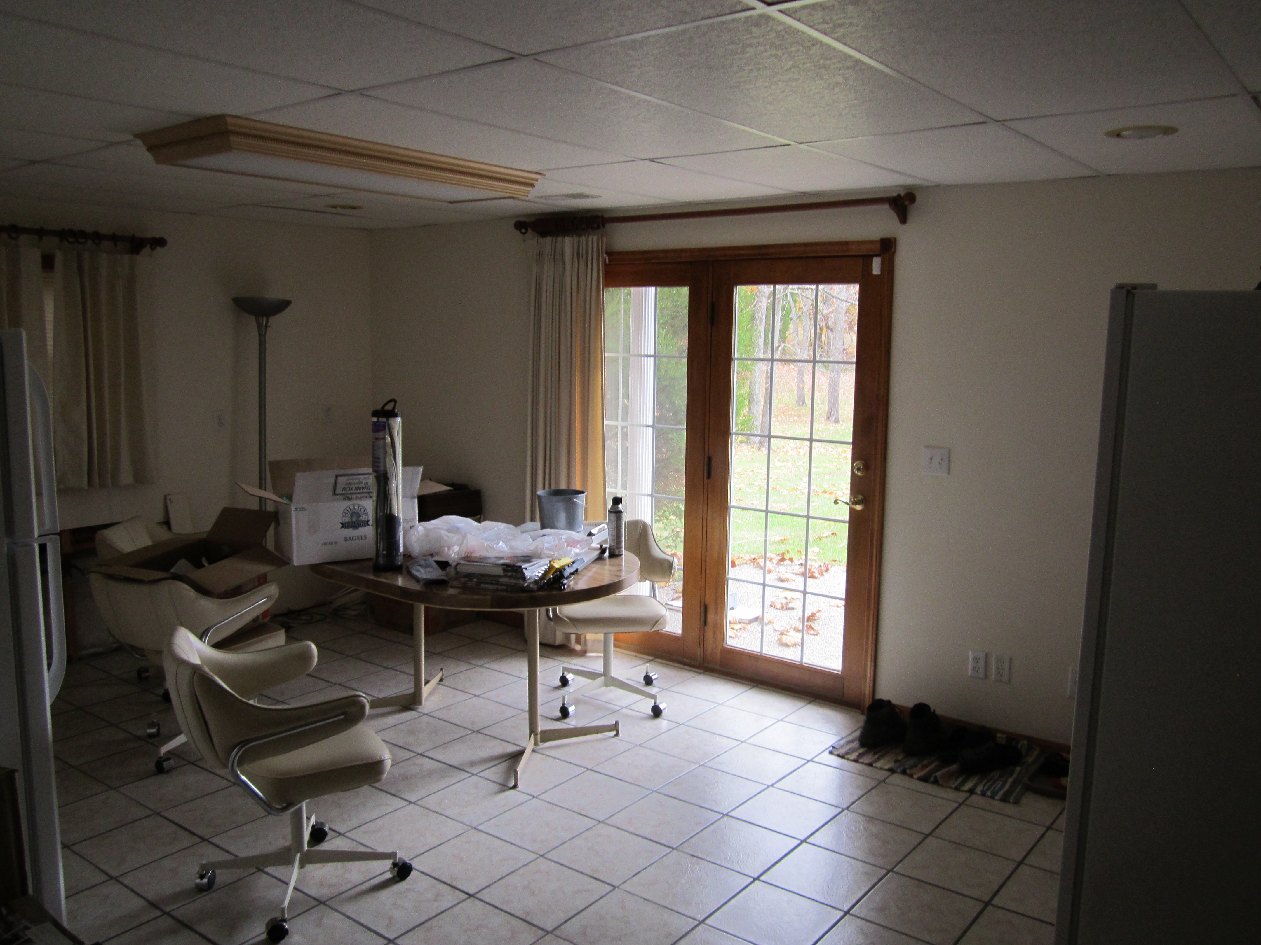 This is the back doors out to the back yard. The area to the left of the doors now have cabinets. I'll do pictures of that later. |