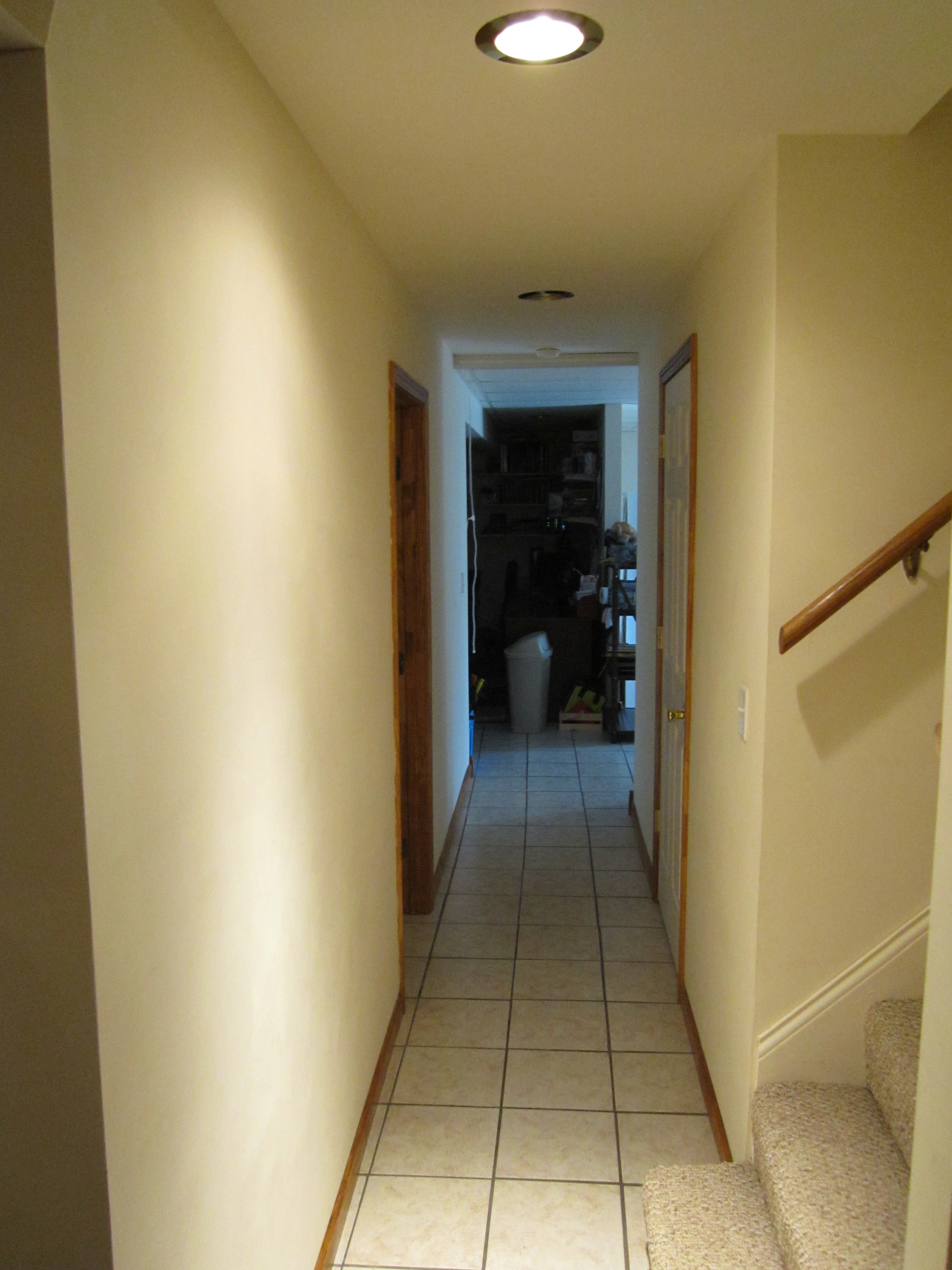 The downstairs hallway looking from the family room back to my room and the second kitchen area. |